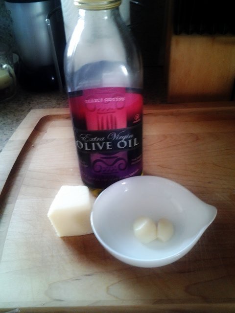 The basic accouterments: olive oil, garlic & Parmesan cheese
